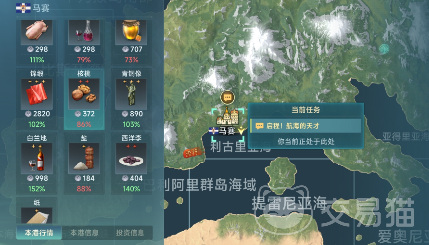 在法兰西初期阶段,可以形成比较强的贸易道具就是核桃干,而这个东西在巴伦西亚是可以获得很好收益的,但是这条航线非常地漫长,需要玩家们对于补给与士气管理进行提升,这样在航线行驶的时候可以降低很多的风险。