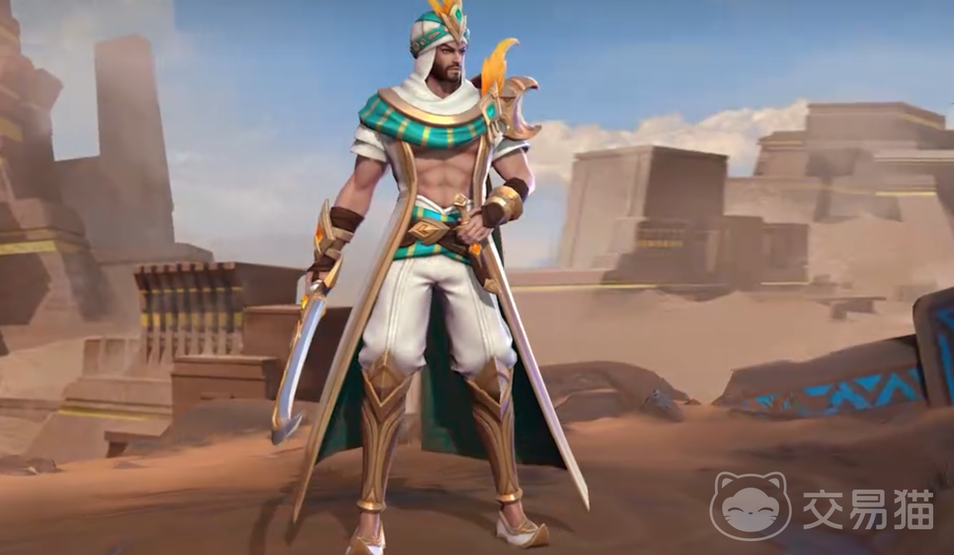 他的一技能“沙漠飓风”会旋转起手中的沙刃,对周围的敌人造成物理伤害,并将目标向自己的方向拖拽,在技能持续期间,总共会拖拽3次,他的二技能“流沙守护”会汇聚流沙的力量保护自己,帮助持续回复生命值,并降低受到的伤害。