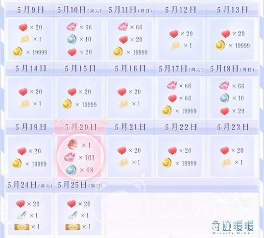 谈起这次的周年庆活动,根据官方公布的消息,会在5月9号版本更新后开启,当活动开启后首先大家将要看到的是累积登陆游戏领取奖励的活动,该活动的奖励分为17天,只需要完成17天的登陆那就可以领取到大量的钻石、体力、星光币、头像等大量奖励。