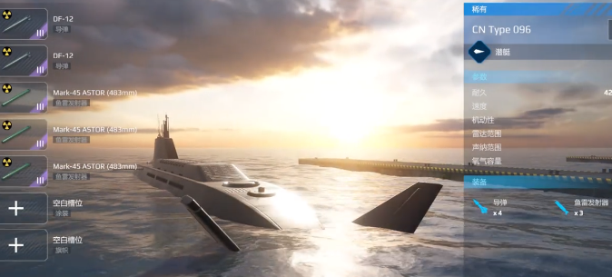 096 型:这就是一个战略性的潜艇,下潜的深度就可以直接达到600米。而且还可以携带导弹,如此就能有效实施远程威慑。在战斗的过程中,一旦选择潜伏,那敌人根本就没有察觉到。