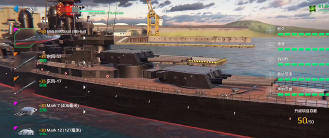 密苏里级:拥有很不错的隐蔽性,而且静音效果很好,可以执行一些偷袭任务。在武器搭配上可以选择伤害比较高的鱼雷,攻击力是不容小看的,往往都会让对方措手不及。