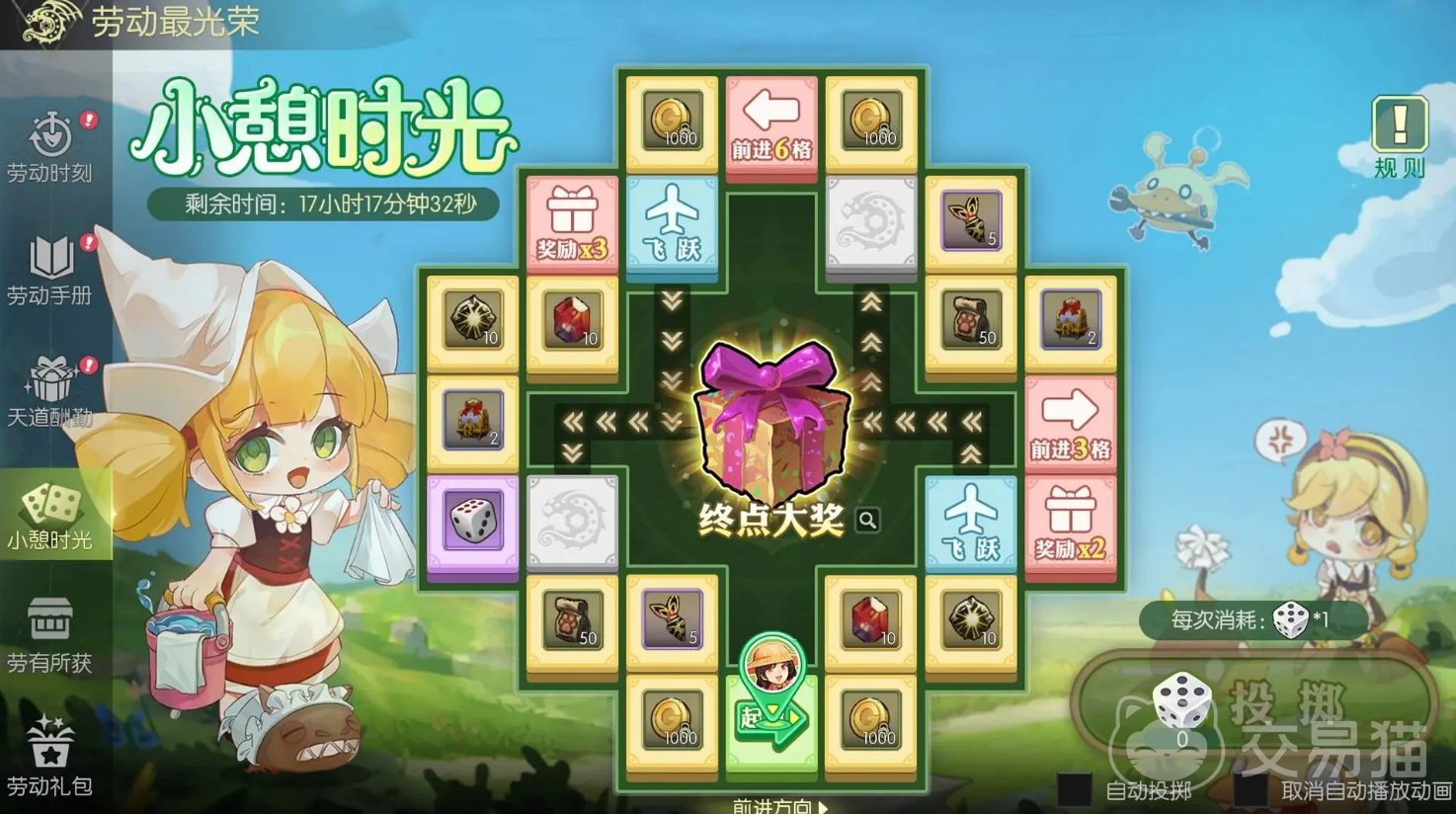 说到大富翁骰子,大家肯定对这项玩法不陌生。在五一活动期间,你可以通过完成日常副本和挑战任务,获得劳动手册任务中的大富翁骰子。得到了骰子之后,只需投掷,就能在大富翁的棋盘上走一圈。每个格子里都有不同的奖励,走到终点还会有特别的劳动纪念券,兑换珍稀资源。这种充满策略和惊喜的玩法,谁能不爱呢?
