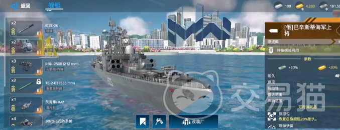 巴辛蒂斯:火力比较强大,而且还有优秀的耐久性,声纳的范围是很不错的。有三个火箭炮,还有两个主炮,另外还会携带红旗,可以有效增强综合性的实力。
