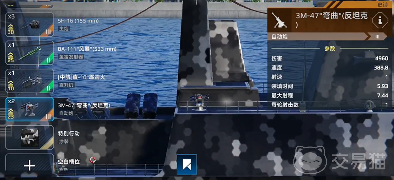 在武器配置方面,地平线具有较大的自由度。导弹推荐使用X-51乘波者,其高达31200的单发伤害与优异的飞行速度,在实战中有着良好的命中表现。主炮方面,若能获取SH-16将是最佳选择,其高射速与双发机制能够在短时间内打出稳定火力;若没有活动奖励支持,也可考虑H/PJ-45这类主炮,性能均衡,性价比高。鱼雷配置建议使用BA-111风暴,其特点在于飞行速度快,命中率更高,尤其在对抗中近距离目标时效果显著。舰载机部分可根据自身条件灵活搭配,推荐选择飞行速度较快的型号,如直-10霹雳火,以提升打击效率。