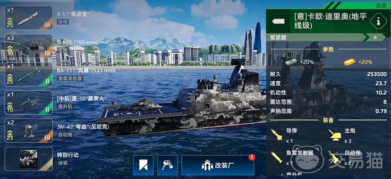 在舰船升级方面,应当优先提升船体耐久,以增强生存能力,保障持续作战能力。随后可集中升级导弹的伤害与载弹量,以及主炮的整体性能。鱼雷方面建议重点提升伤害与装填速度,以增强爆发输出。飞机与自动炮的升级则可根据资源情况酌情处理,并不直接影响舰船整体作战能力。