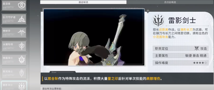 雷影剑士:这就是大家比较熟悉的太刀侠,技能特效是比较炫酷的,而且还支持二次转职。不过在转职时所需要的材料还是比较多的,因此玩家还是需要结合实际情况来选择。
