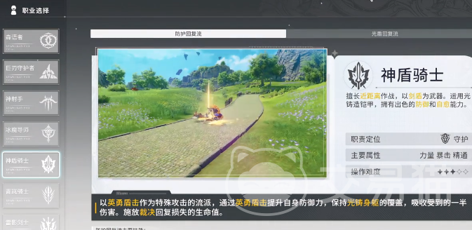 5、神盾骑士:这是一个具有抵抗能力,而且也拥有恢复作用的角色。在团队中就是一个坚实的后盾,在经过转职之后就会拥有一个比较出色的防御回复,能有效提升辅助能力。