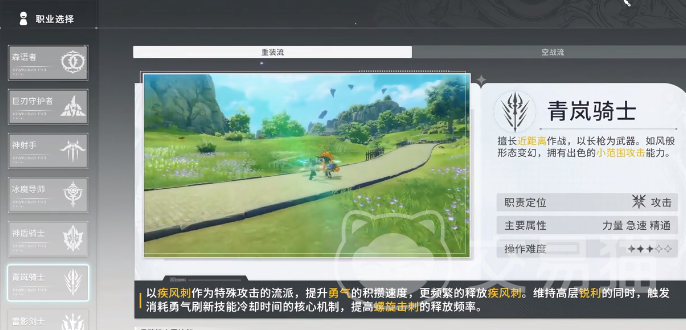 4、青岚骑士:操作的手感是很不错的,会拥有一个独特的破阵机制,可以轻松地应对精英。在经过转职之后,空战流玩法和重装流之间也有较大的差异。