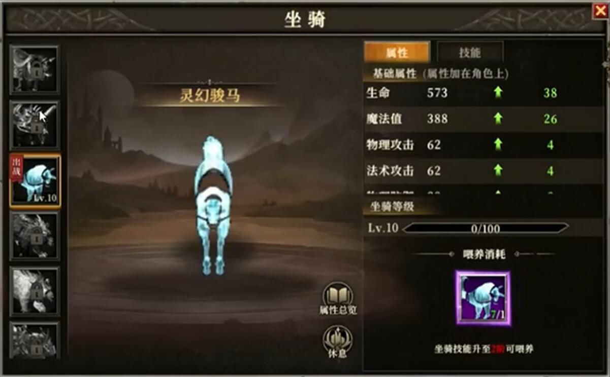 坐骑属性会直接叠加到角色面板,无论是否骑乘都生效。这也就是说即使平时不召唤坐骑,也能享受属性增益。若集齐同一系列的三只坐骑(如灵马、炎狼、冰凤),可激活套装效果,额外增加2%暴击率或5%移速。建议平民玩家先专注培养一个系列,避免资源分散。