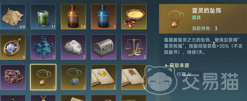 这些东西全都准备齐全以后,在找到行商,从行商的手中买一个雷灵饰品,这种饰品能够提高我们获取的烹饪技能经验,把有烹饪食品相关的服装给穿戴好,在把雷灵饰品给代号就可以开始烹饪练级了。