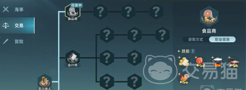 玩家在游戏中想要成为能够制作料理的厨师,需要先成为食品商人,只要成了食品商人就可以解锁烹饪能力了,玩家们想成为食品商人的话,需从找到工会会长,从会长这里登记一下就能成为见习商人了,之后在赚10万海币就能转职成为食品商人,成为正式的食品商人我们就可以去学习各种烹饪技能了。