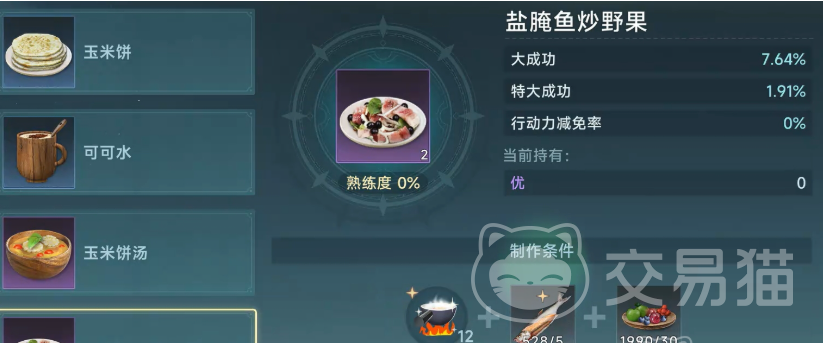 成为了厨师以后,玩家想要练级的话,可以经常制作料理,制作料理之前,首先我们需要用的食材比较充足,准备食材时,小编建议大家最好多准备一些香辛料,香辛料有一个重要的用途,就是对于烹饪的等级有着临时提升的效果,使用香辛料,烹饪等级能够临时提升30分钟,有了香辛料以外,练级时还需要用到行动力,这里建议尽可能的攒一些料理以及饮料等。