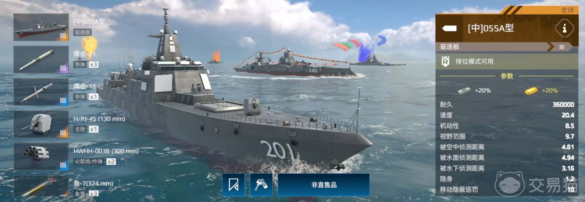 对于055a这艘舰船来说,它的武器搭配非常全能,而且布局合理,能够应对多种不同的战斗场景,无论是远程还是近程都有着很好的搭配。使用起来的手感也比较出色,颜值方面更是目前的佼佼者,良好的视野高度和优越的机动性以及速度,即使是新手玩家也能轻松操控,不过缺点在于武器较多,而且操作比较复杂,在面对高强度的防空火力时,打出的导弹容易被拦截。