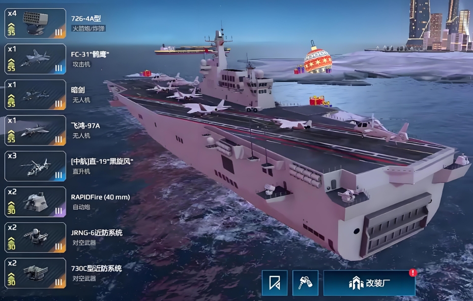 想要在这个模式中尽可能的取得胜利,关键是要对战舰进行装配。虽然说玩家们在选择战舰的时候其实已经是在选择不同作战能力的战舰了,但是在战舰的装配上是可以有多种搭配的,比如说选择作战的地形图比较开阔的话,可以尝试搭载直升飞机,直升飞机作为另一种攻击角度,可以给予玩家高空俯瞰视角的攻击角度,也就更加容易掌握导弹发射的时机来更好的输出。