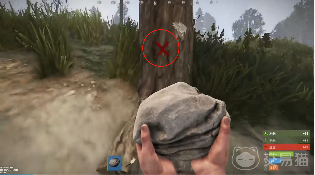 对准树木红点敲下去,采集的效率将大增,矿石则是对准亮点。大麻纤维在游戏中扮演重要的资源,因为可以取得布这个素材,许多东西都是需要布,所以看到一定要记得采集。