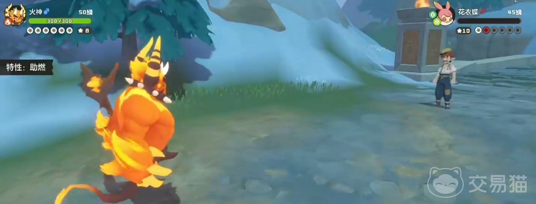 在第二战中他会派出一位特性是花精灵的花衣蝶,我们继续使用火神即可带走,他的第二只是拥有草系加幽系的幻影灵菇,同样火焰技可以一击击杀,他的第三只是草系的伊贝粉粉,依旧是一击带走。