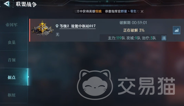 如果只不过是打算攻打效能中枢站这样的小城,那么就没有什么太多的操作难度。可如果准备攻打控制枢纽,相对来说就比较复杂,稍微一个不注意就有可能会出问题。在攻打时就需要注重于破解的环节,在破解之后就需要将主城直接迁过去。整个破解的过程中时间相对比较长,这里就有一个小技巧。