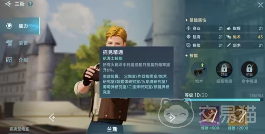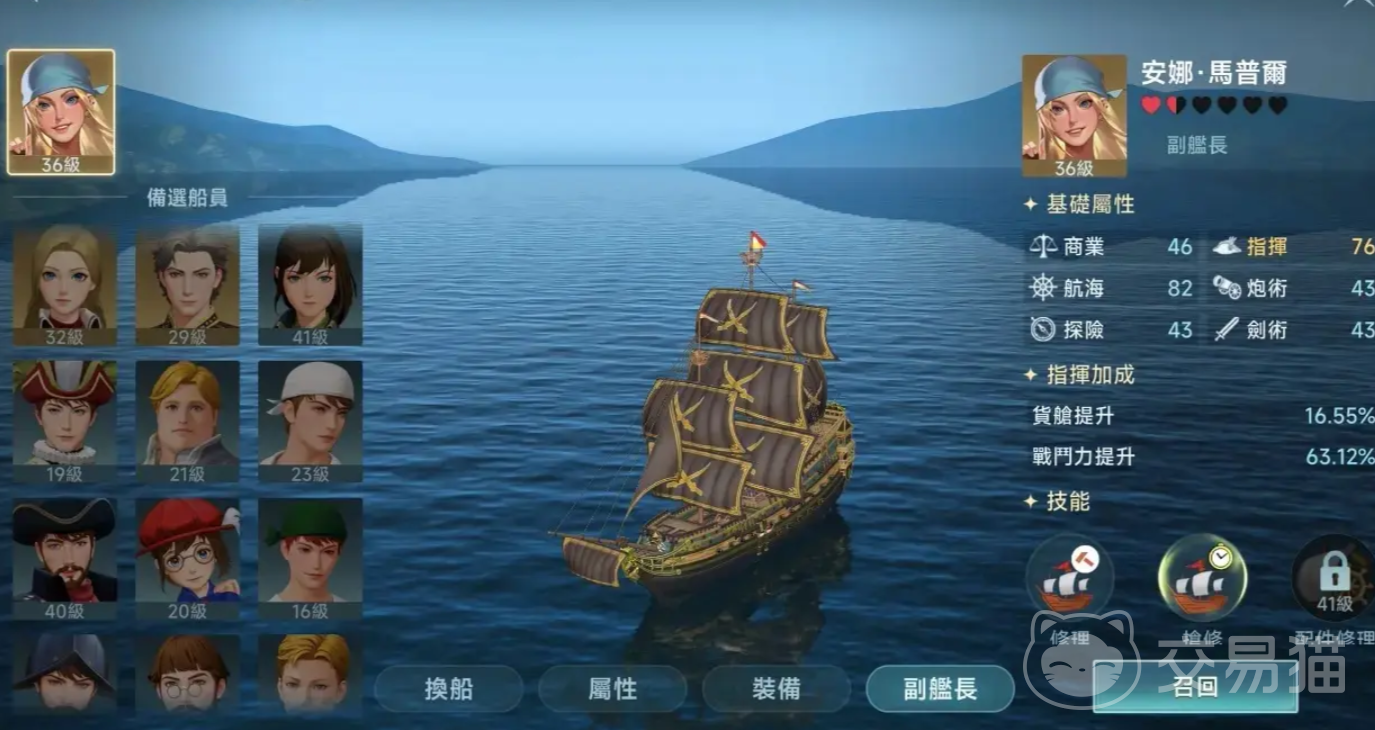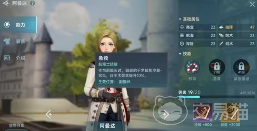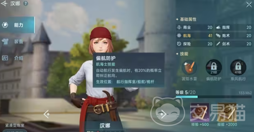 第二个值得玩家携带的贸易型角色是汉娜,她在游戏内,虽然并不具备有很强的商业能力,但是其航海数值非常高,可以避免玩家在游戏航线之中,出现偏航情况,这对贸易战而言,是非常高效率的一个角色,它可以极大程度地缩短,玩家在海上停留的时间~