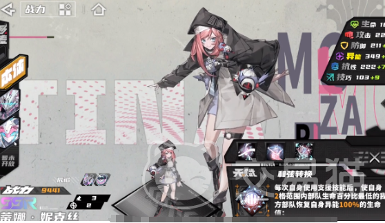 蒂娜妮克丝:是一个纯粹的治疗角色,奶量相对比较高,有增加护盾还有驱散负面的技能,保人能力比较强,但是辅助能力相对比较欠缺。