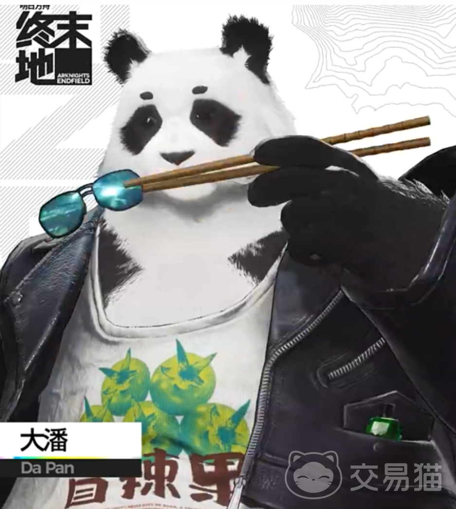 明日方舟终末地中的熊猫人名字叫做大潘,它属于乌萨斯这个种族,大潘在游戏中的造型非常的独特,成功的把传统元素和现代元素给融合在一起,让它看起来既有着雄猫特有的憨态可掬,又带有一种帅酷的感受。
