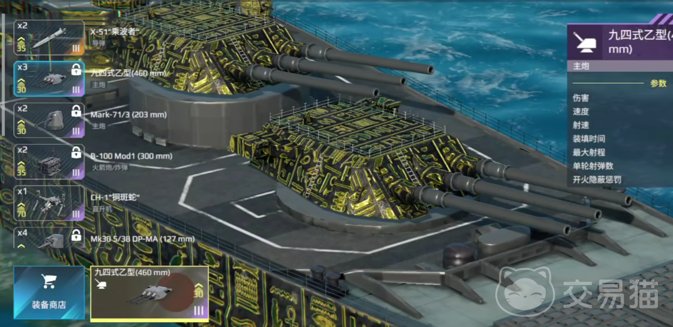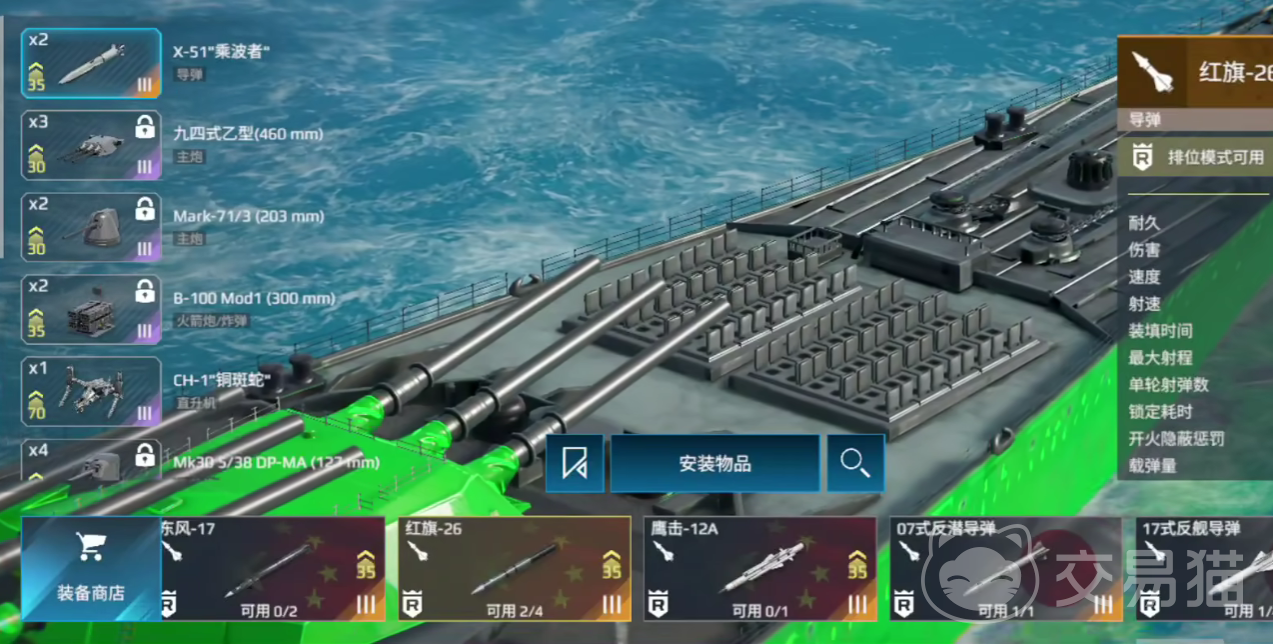 在火力搭配的选用上面,主武器可以使用X51导弹,该导弹具有高爆的穿甲能力,单发能够击中中小型的舰船,服务器可以使用多门九四式,亦或是MAK2-7,该副武器的火力密集覆盖度非常强,齐射的伤害最高可达12万点。