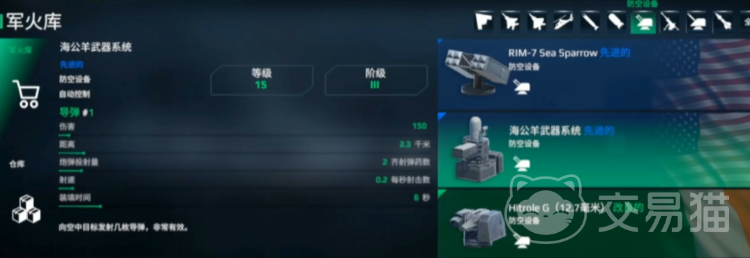 铠甲系统,拦截导弹能力强,适合防御高密度导弹攻击。海公羊系统,拦截飞机能力强,适合防御空中打击。JRNG6,综合性能优秀,适合多种防空需求。