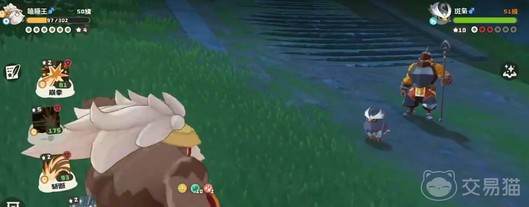 属性相同我们不需要切换精灵,继续用具有双倍伤害的二星技斩断带走,他的第三只是翼系的斑枭,这里就建议大家替换成电系精灵,比方说星光狮,电系是能直接克制翼系的,上场后一发2星技离子火花就能直接带走,打败这三只后会开启第二场战斗。