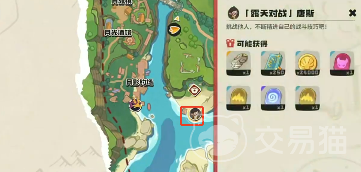 唐斯是在月牙镇钓场的右边,即首领位置的右边,如图所示,可以先传送到附近的炼金台,然后在右手边水岸边上的一块大石头上(附近还有一个精灵宝箱)就可以看到学生模样的唐斯。