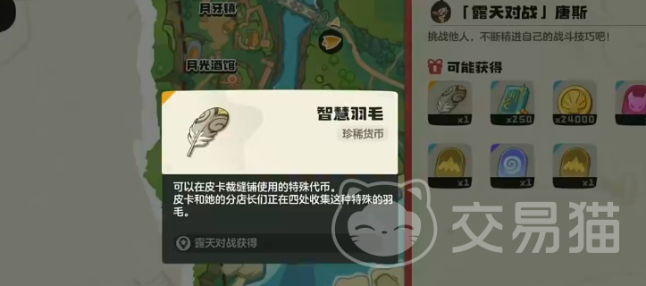 幽系的精灵,可以同样派出有先手的幽冥眼,一招5星的幽系技能“幽灵爆发”可以直接将其带走。唐斯挑战奖励有智慧羽毛,这个是只能通过这个露天对战获得的,此外还有2星恶系技能“撕裂”,至于其它的则是一些常见奖励了。