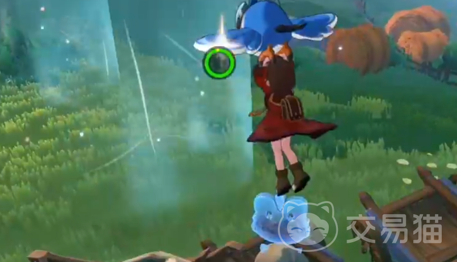 再向右边一直走,走到稻草人地,第五块牌子在红蓝草人的后面,顺利交互后直走到农用车那,能发现第6块牌子倒在了草地里面,找到后回头召唤一个飞行精灵,顺着光柱的方向飞。