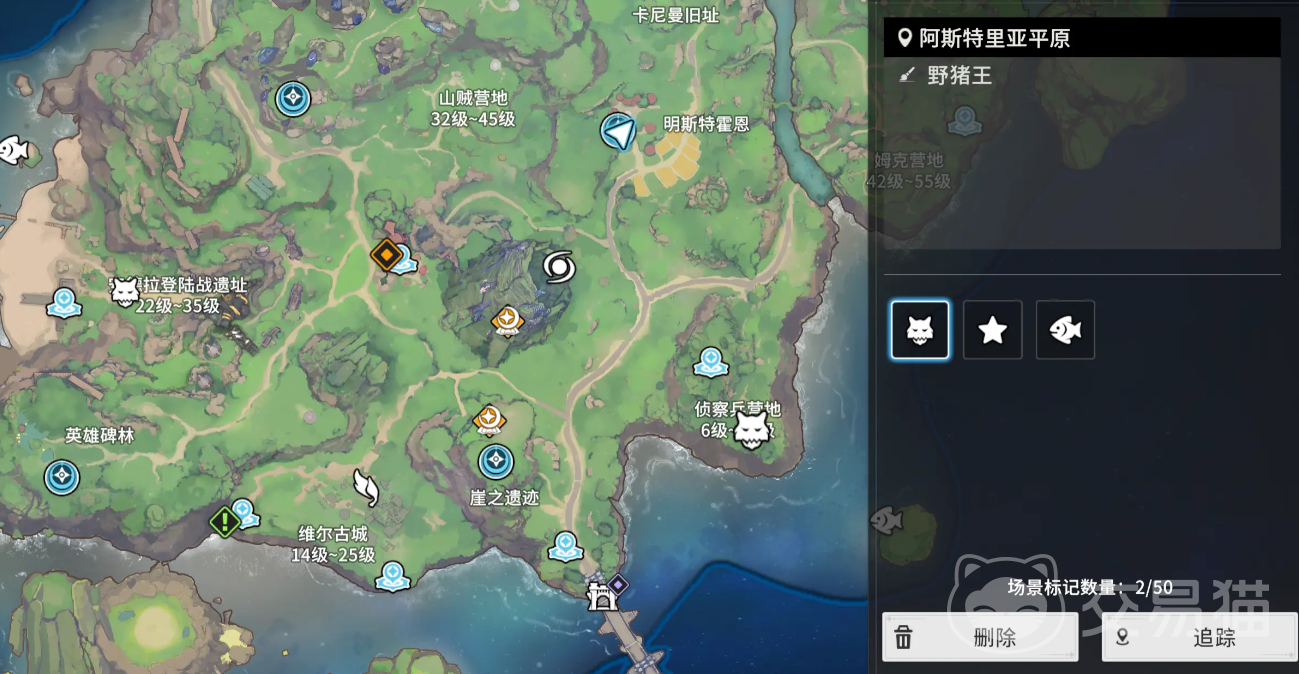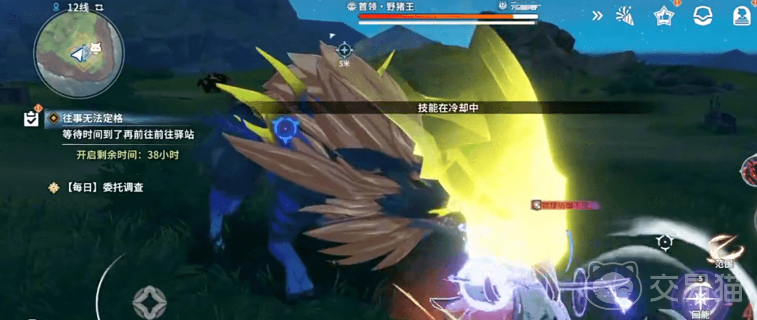 野猪王是作为新手时会接触到的第一个boss,它总共有6种攻击方式,每次释放招式前,鼻子都会进行喘气,它的一技能会用獠牙向前面进行上挑攻击,二会用獠牙横向攻击,这两个技能都比较好躲,因为攻击距离比较短,只要使用任意拉开距离的技能就能躲避,它的技能三会抬起双脚向地面砸下,并向附近释放出三道光波形成范围伤害,如果它使用这招时我们距离比较近,可以使用躲避逃出范围;