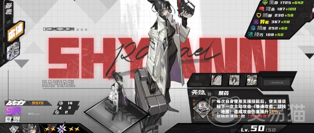 夏恩别看不是输出型的角色,可她在所有的卡牌中却时唯一一个同时带有高频挂防御强化以及抗性强化的能力,战斗时可以直接降低队友后下次战斗受到的伤害,和维兹配合使用的话,夏恩可是非常强势的哦。
