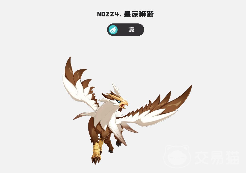 皇家狮鹫在游戏当中也是值得培养的,因为它也是非常优秀的宠物,它的艺术性比较高,32级之后就能够直接培养,46级就能够达到最终的进化,种族值高达635。由于皇家狮鹫的攻击性跟速度都特别的高,它的扇风先手技能能够有效地提升50%的伤害性,一旦触发之后还能够实现4连击。