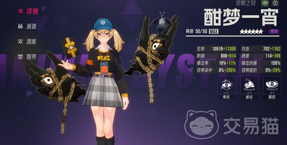 酣梦一宵来自充满青春活力与无限可能的十三区高校,她凭借着自身独特的魅力和强大的能力,赢得了很多人的关注,她拥有一个令人心生敬畏的称号叫做安眠之刻,她的普攻名为追袭,当酣梦一宵对敌方单体发起攻击时,会以凌厉的攻势造成2段伤害,每段伤害都高达120%,且每次攻击都有30%的概率附加2回合的睡眠状态。