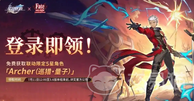 在联动期间,玩家可于游戏之中,这是领取到免费五星级别角色Archer,该角色的属性为“寻猎”和”量子”,活动维系的时间是2025年7月11号的12点,直至3.6版本的正式结束。
