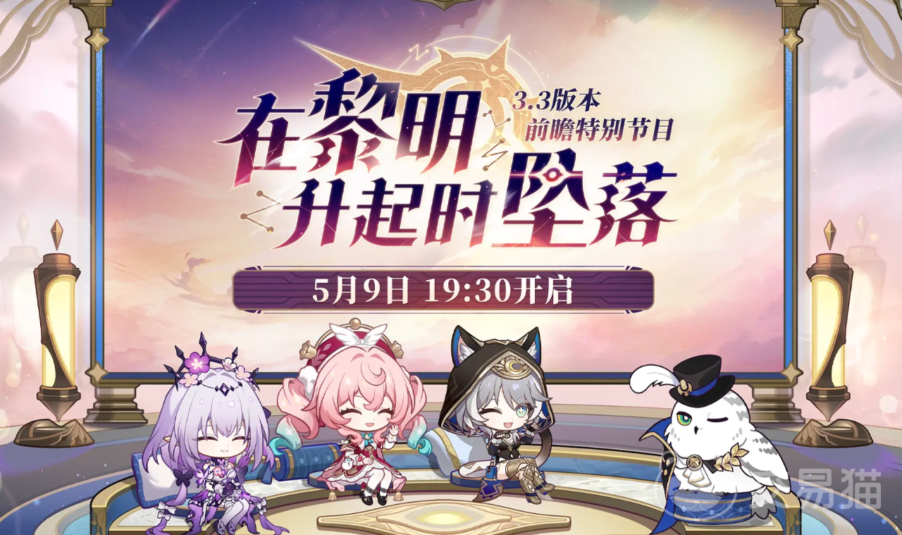 崩坏星穹铁道3.3版本「在黎明升起时坠落」,亚洲以及国服将于2025年5月21日,游戏正式更新后开放,国服相关的更多细节爆料,会在2025年5月9日晚上19:30开启前瞻直播,届时会解读后续游戏更新的预告。