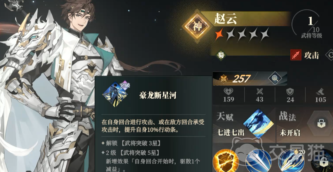 如果是对阵双方武将速度相同并且在同一个位置的情况下,pve里则是玩家先手,pvp的话则是战力高的先手。此外,有的武将出手还受自身技能影响。例如赵云的突破技自身回合攻击、或在敌方回合被攻击可以提升行动条,如果被攻击后来到行动条底部,还有其他角色也在行动队列,依然要按照前面的规则来触发行动。例如有比赵云速度高的,那依然是别的武将先动。