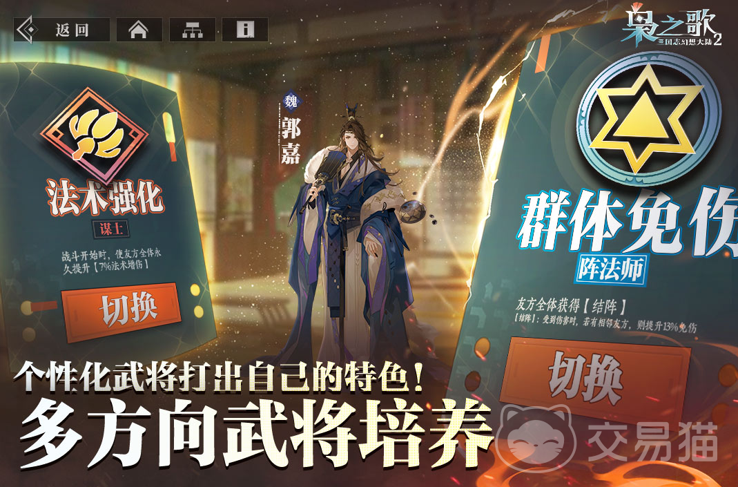 以上就是三国志幻想大陆2枭之歌公测时间介绍的内容了。这款游戏给人的感觉是:它不仅想让玩家来抽卡,更是想让你记住这些人物、这些故事。三幻2:枭之歌就像一针打进卡牌市场的强心剂,提醒我们,卡牌游戏不只是数值比拼,更可以是一场沉浸感十足的内容盛宴。