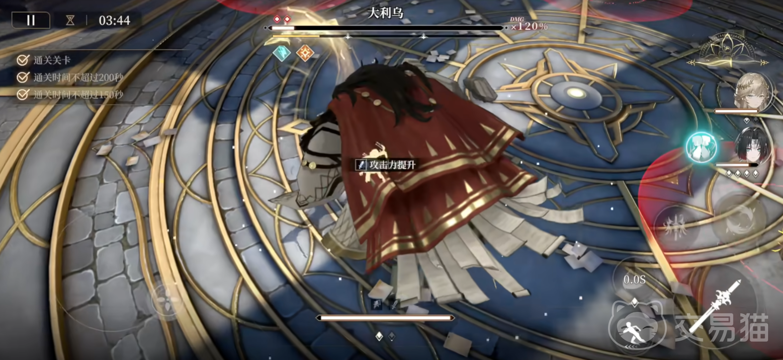 大利乌作为一个领主级怪物,具有高爆发和一定的控制能力,因此建议采用 1主C + 1破势副C + 1辅助/治疗 的阵容组合。主C推荐大家用伊蕾什安,带有暗属性高爆发伤害;副C可以用铂鸢(火系高伤),这样即可提升输出效率。