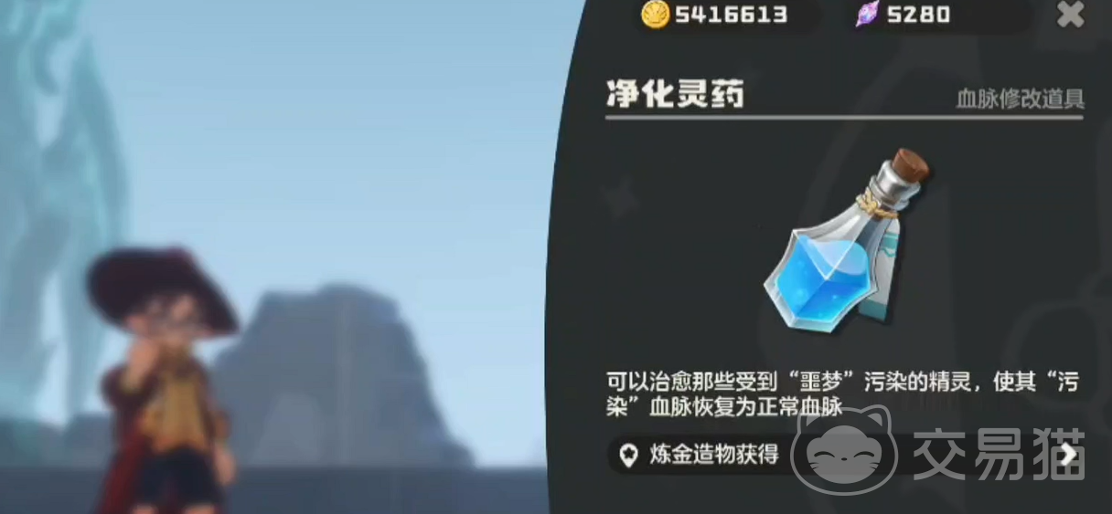 中后期可能会见到的一种形态,以图中的蹦蹦花为例,黑不溜秋的。可以看到被污染的精灵它的血脉技能会受到影响,拥有四个技能无法更换,也无法学习新技能。技能图标有紫色的外圈框框,无法正常使用。不过可以使用“净化灵药”来解毒,可以自己做,不是很难做,给精灵使用这种药可以给这个精灵使用,就可以解毒了。