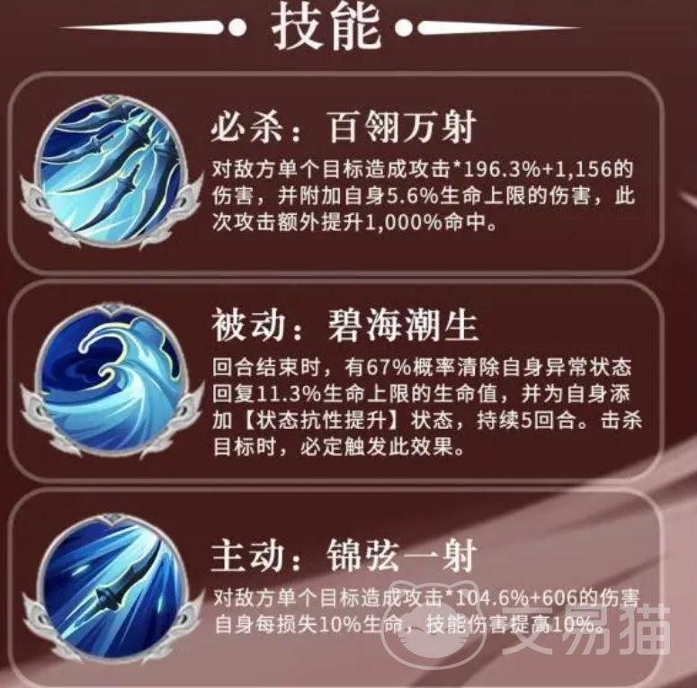 甘宁的被动技能碧海潮生更加的强大,一旦回合制结束之后,可以有较高概率清除自身的异常状态,这时候就能够直接回复生命值,还可以添加状态下的抗性,就能够持续性的回合,在击杀目标的时候,这个效果肯定是会触发的,并且让他的生存能力更强,在战场上会更加的持久。