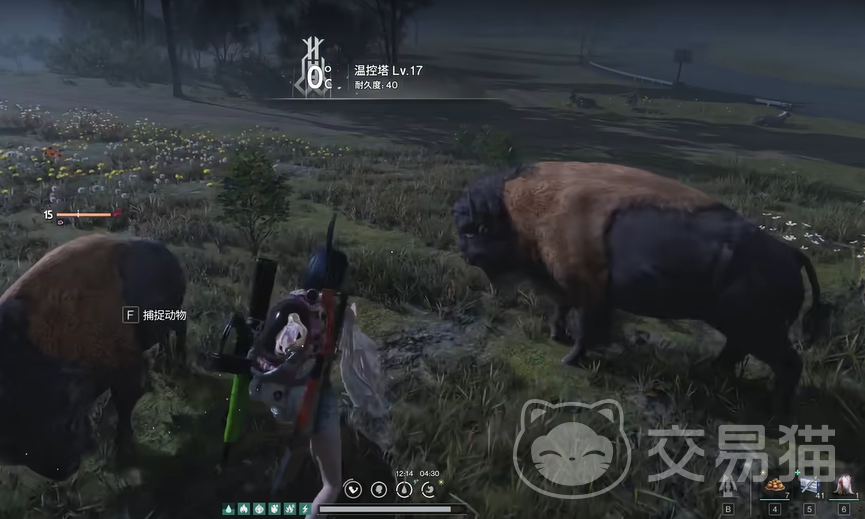 抵达传送塔以后,玩家们只需要往山坡方向走几步,这时候需要在背包中放置野兽的捕捉器,然后到达野牛附近,使用f键位就可以完成捕捉了,整个捕捉过程不需要使用任何的陷阱,野牛生物属于没什么攻击性的,只需要悄悄靠近就能完成野兽的狩猎了。