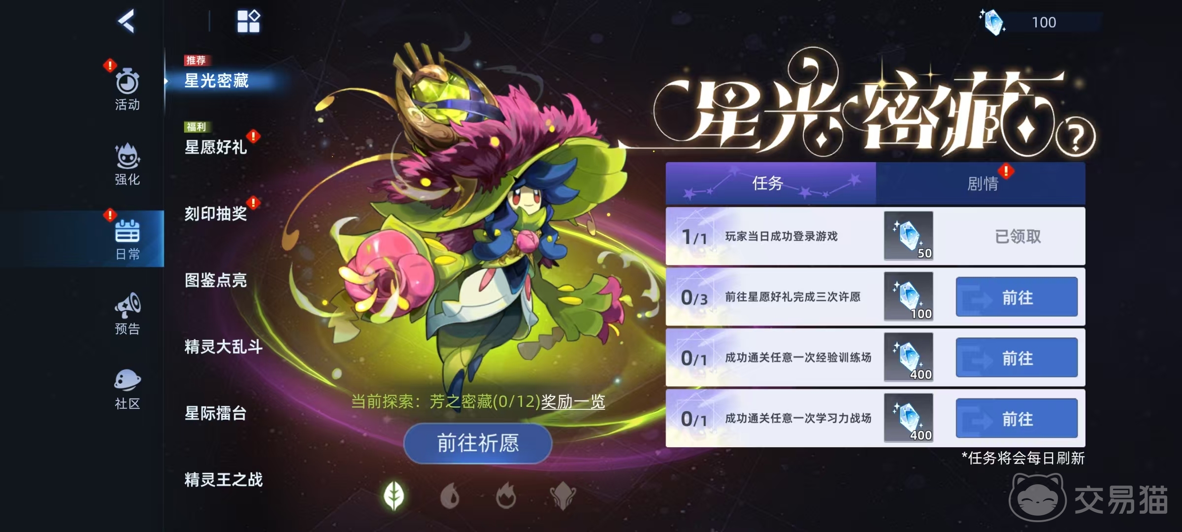大家进入游戏中之后,直接点击界面中的星光三主宠,就可以切换到相应的星光秘藏界面。在这个界面中一共有4个活动,分别对应着芳之秘藏,海之密藏,焰之密藏和光之密藏。中芳之秘藏完成探索之后可以获得星光丽莎布布,海之密藏完成之后可以获得星光鲁斯王,焰之密藏完成之后可以获得星光魔焰猩猩,最后一个光之密藏,可获得星光三主宠的经典皮肤,全抗性转化晶石等。