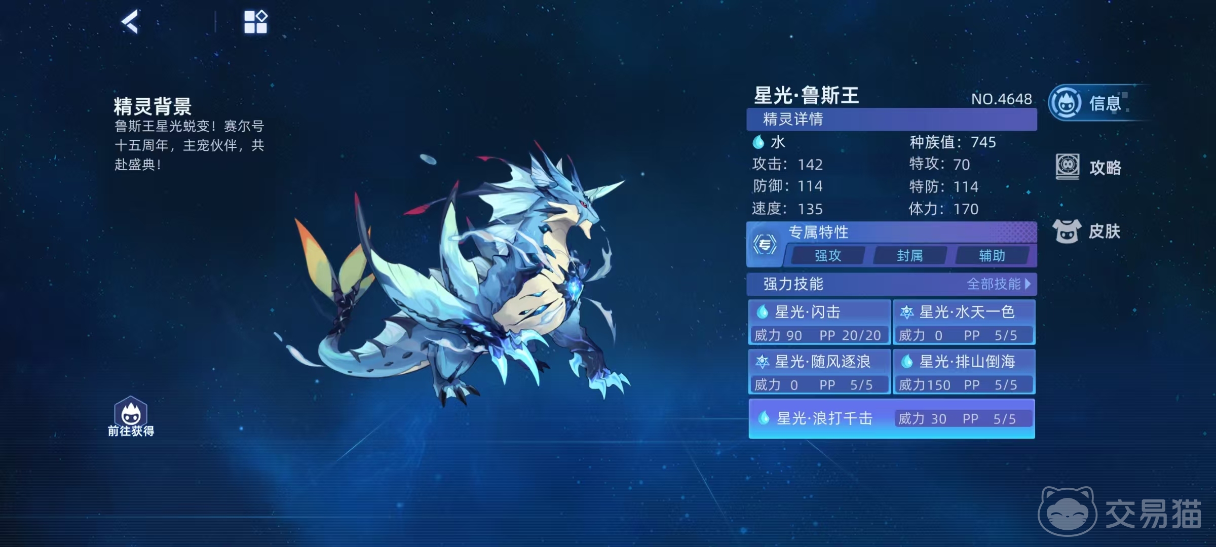 三只宠物各自都有特点,先来看一下星光鲁斯王,它具有较高的种族值分配,攻击和体力比较突出,在PVP中有着很高的战术价值,如果能够合理运用,可以反弹对手的高伤害,生存能力也比较强,能够在场上站住脚,持续发挥作用。缺点是相对一些高速精灵来说,自身速度比较慢,可能无法做到率先出手,容易陷入被动的局面。