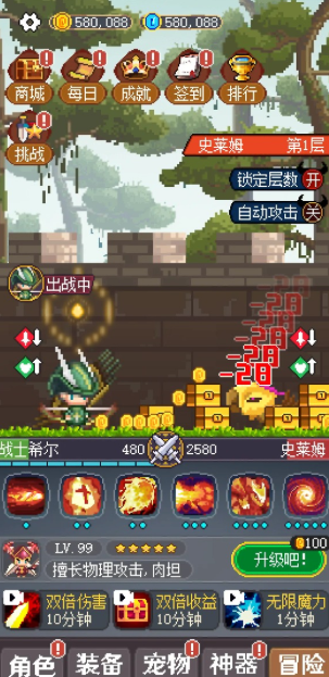 《神级勇士》作为一款像素类竖屏游戏,为玩家创造了一种非常护肝的放置类休闲玩法。