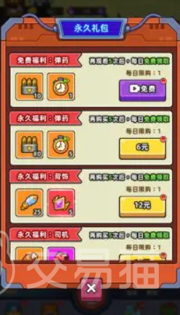 之后还可以来获得黄金时装的套装,可以帮助大家更好的来更换小鱼战士的造型,除此之外,还有一个是永久的礼包,前期观看广告是可以来免费领取弹药以及加速器的,还有一些超值的道具,后续可以来通过氪金6元,12元都是非常不错的,之后也会有一些超级豪华的礼包可以来自由的进行挑选,只要看免费的广告就可以来获得钻石以及弹药。
