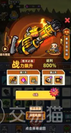 游戏中也有许多氪金的内容,玩家们可以通过氪金的方式来帮助自己不断的进行发展在氪金之前可以先了解一下每一个礼包的福利,然后按照需求来进行选择,首先就是豪华礼包,也是大家最值得充值的,充值之后,大家第一天就可以来获得80级的传说黄金加特林,这个武器是非常强大的,可以帮助大家来更好的进行操作,战斗力飙升,并且只需要六元,非常的划算,还有一些钻石以及弹药可以来获得。