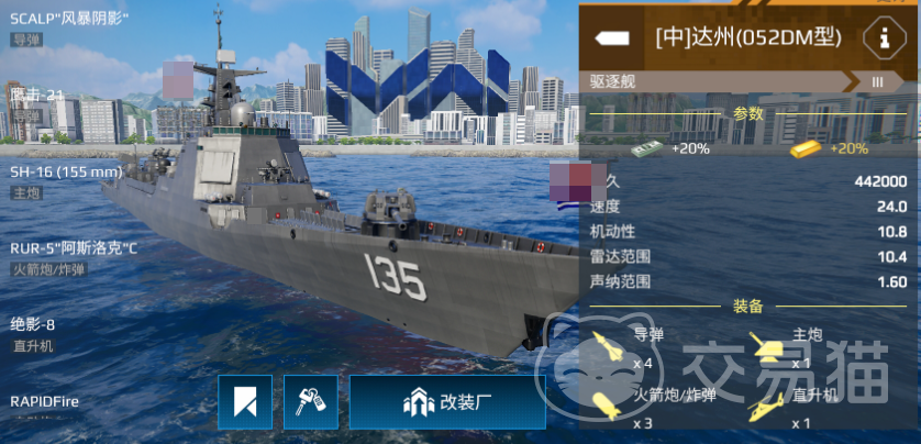052DM达州舰是《现代战舰》中的一艘多功能驱逐舰,强大的火力、优秀的反潜能力和一定的防空性能,可以在很多场合中发挥作用。而本次这里给大家带来的是现代战舰达州舰搭配推荐,毕竟再好的综合性能,也是需要合适的武器配置才能发挥出作用,下面就分享一些比较平民的武器配置。