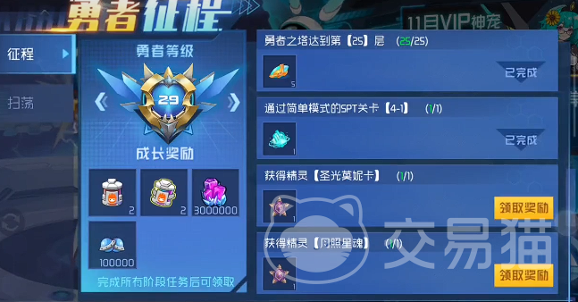打完后可以获得经验和学习力,这可以加速精灵的培养速度。之后是一个叫做勇者之塔的爬塔玩法,这玩法中拥有多种boss,在完成了对它们的攻略后不仅可以提升等级拿到勋章,还可以获得对应的boss蛋。