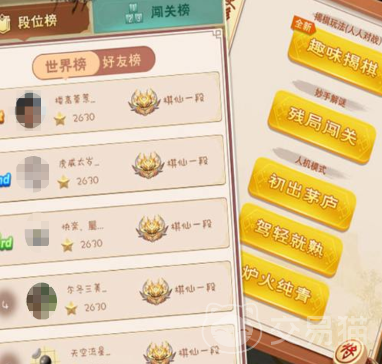 中国象棋大神游戏中设置了3种适合新手提升的系统,初学者可以首先使用人机AI对战系统,它可以帮助新手快速提升自己的棋艺,当你相对自己的棋艺有进一步的提升,可以查看棋谱了解各种棋艺玩法,掌握和学习热门棋艺,当对自己的棋艺有一定的信心之后,联机玩法和同段位陌生人进行对决,给自己的学习来一次中级考试,当然,如果你对对战没有信心,那么残局闯关或许可以给你帮助,随着段位的提升,残局的难度越来越高,对提升段位有着非常多帮助。